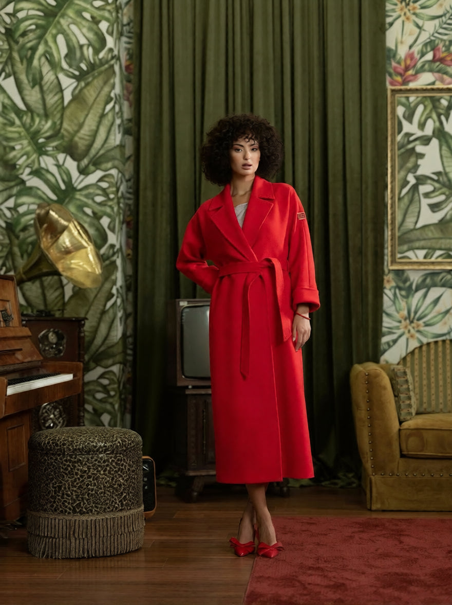 Palton lung din cașmir cu cordon